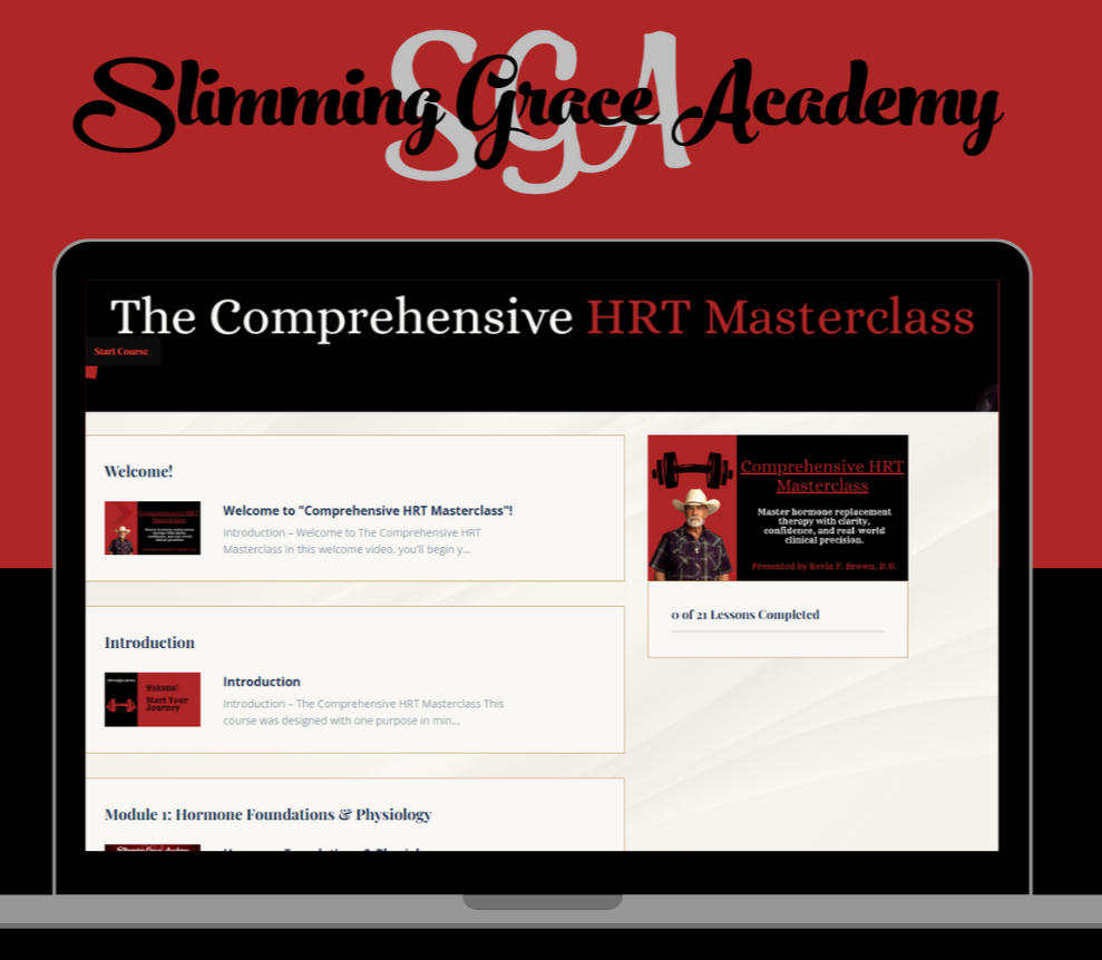 Unlock the confidence, clarity, and clinical skill you need to master hormone replacement therapy from start to finish. This masterclass, created by experienced hormone experts, including Kevin Brown, D.O., gives you the tools to safely and effectively prescribe, dose, and monitor HRT for both men and women.